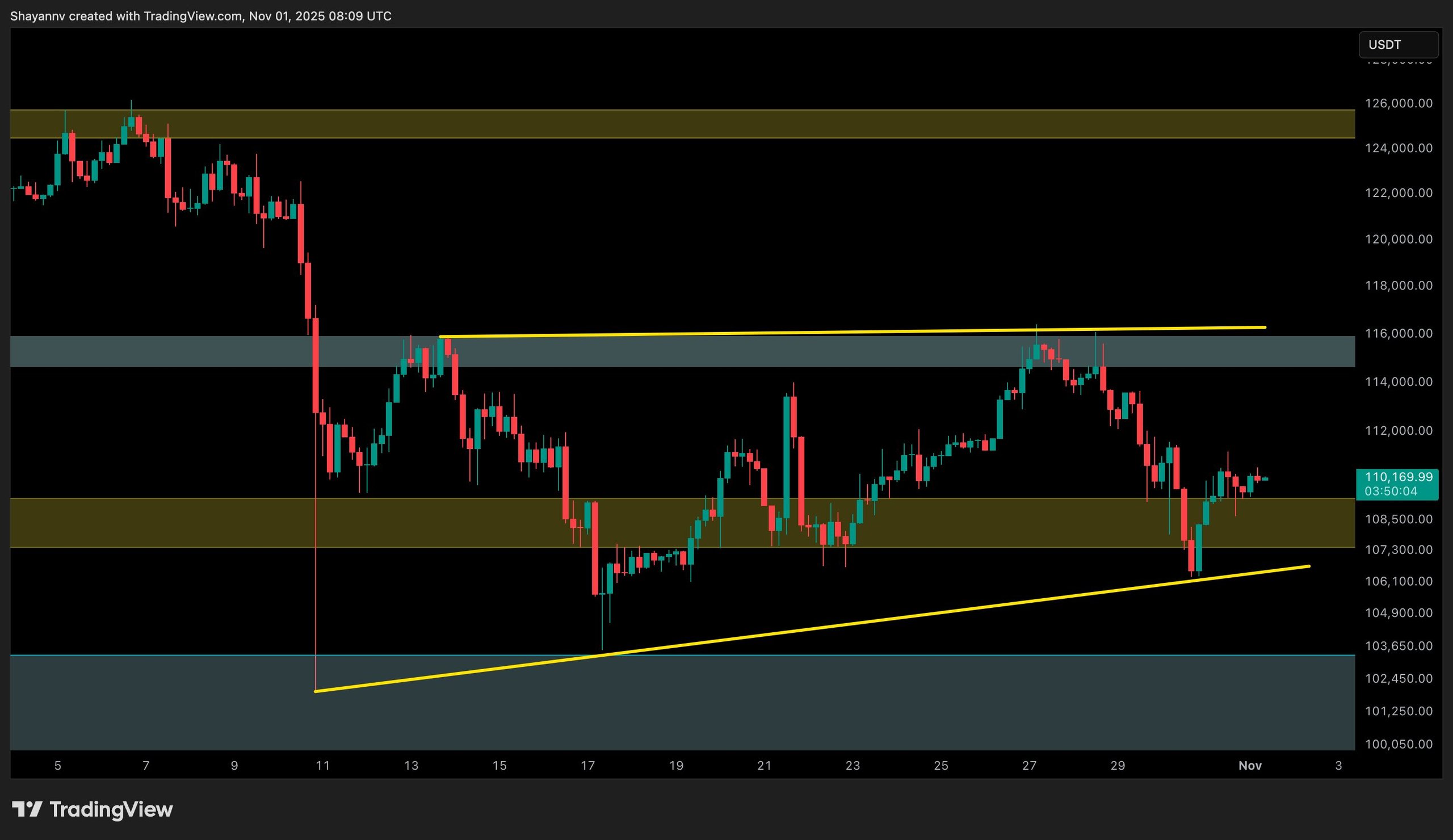 A bullish breakout above $116K could mark a structural shift toward $120K–$122K, while a failure to hold the $108K area would confirm a deeper retest toward the $102K liquidity pocket.