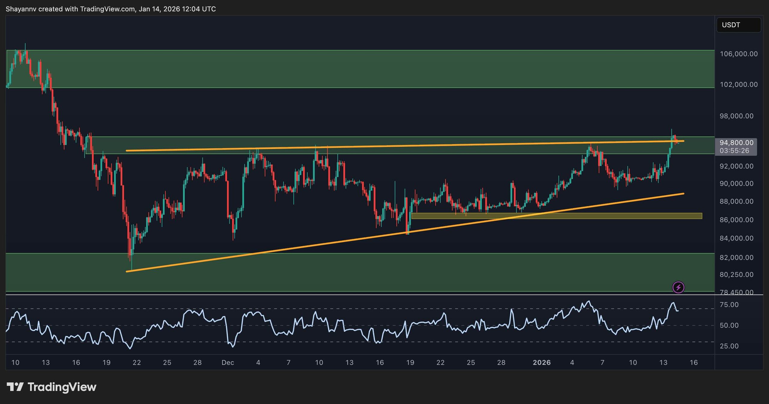 The key point here is that this is not distribution yet; it’s digestion. How BTC behaves around the current resistance will define whether this move is just another lower high or the start of a broader continuation.