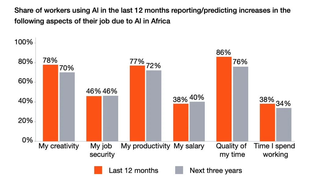 Despite mounting global anxiety over AI replacing the human workforce and causing mass layoffs, African workers say the technology has boosted their income and job security. At least three in four workers also say AI has increased their creativity, productivity and the quality of their time.